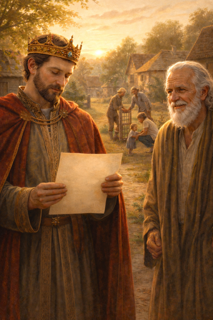 Viimaks tõusis vanamees ja ulatas paberi kuningale.